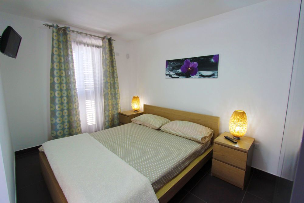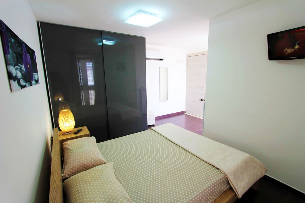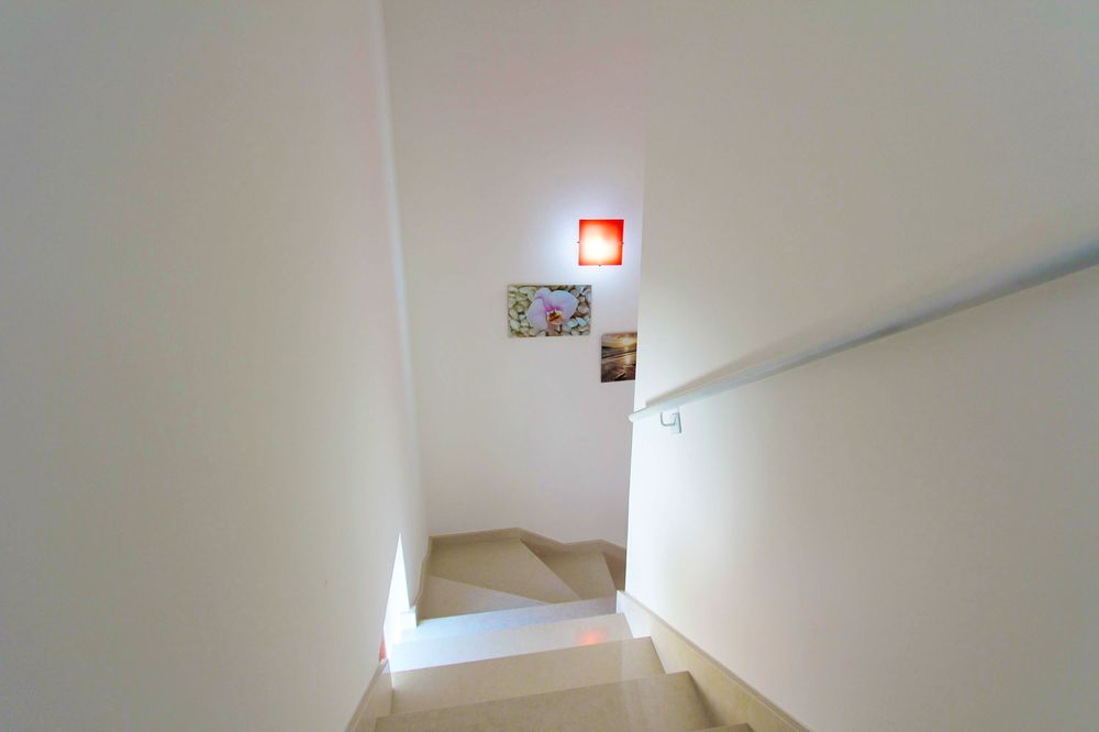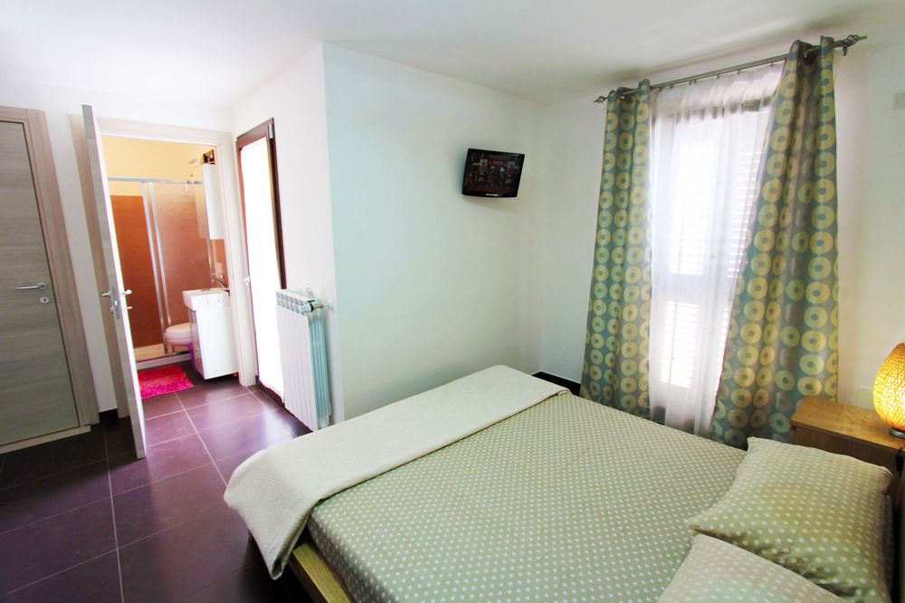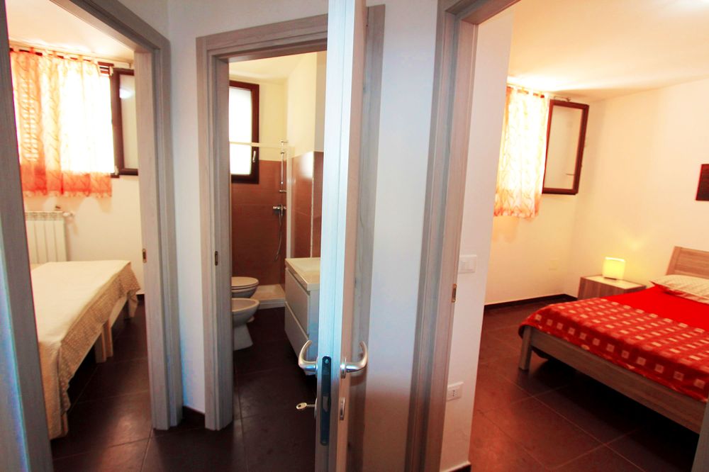 Al piano superiore vi è una camera da letto matrimoniale con bagno privato, climatizzatore e ampio balcone, mentre al piano seminterrato troviamo altre due camere da letto di cui una matrimoniale ed una con due letti singoli, bagno completo con box doccia. Biancheria inclusa.