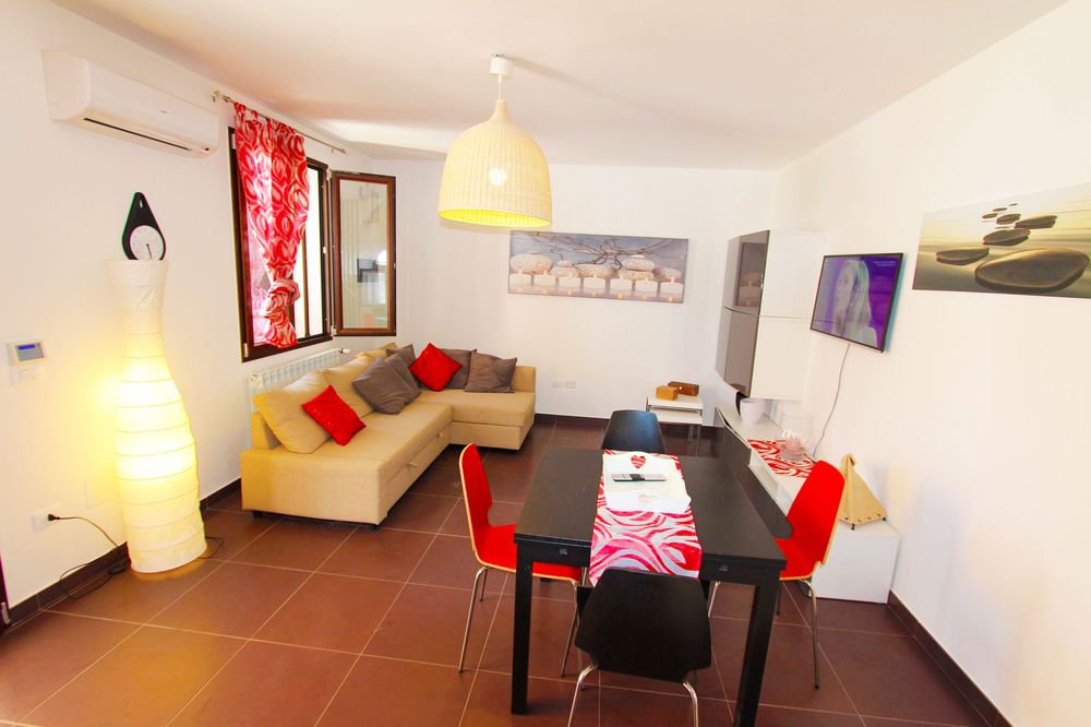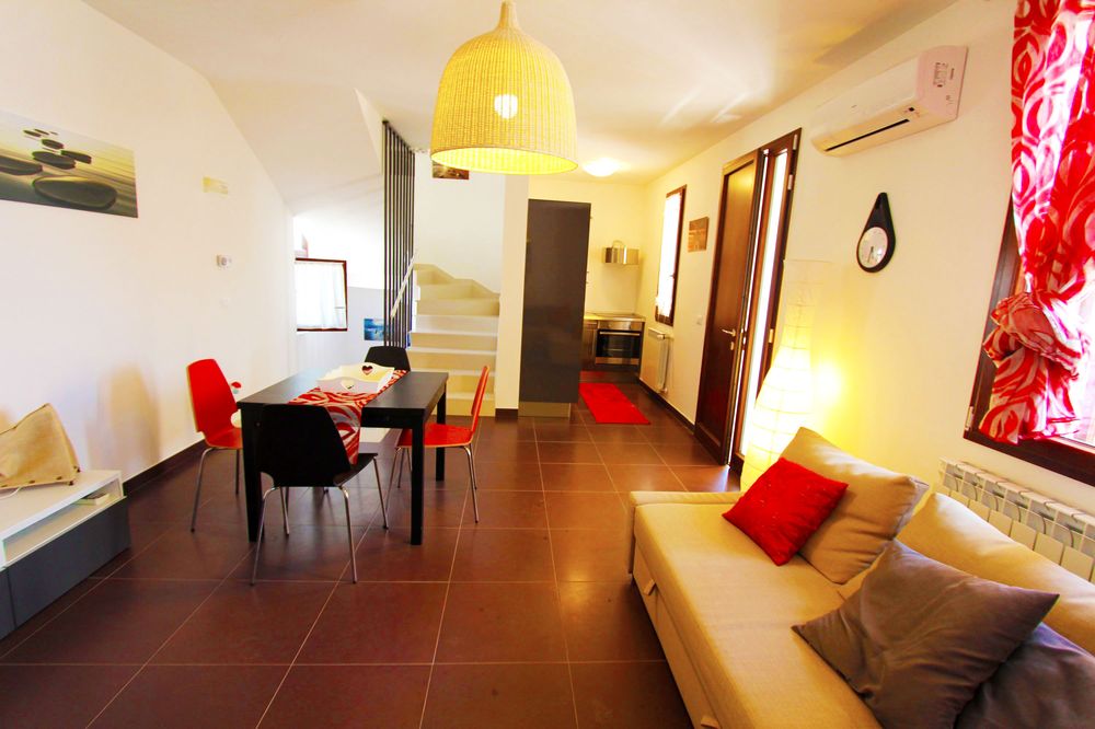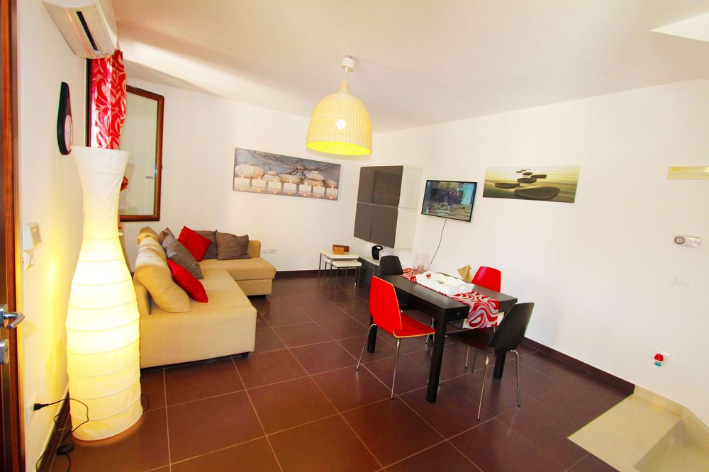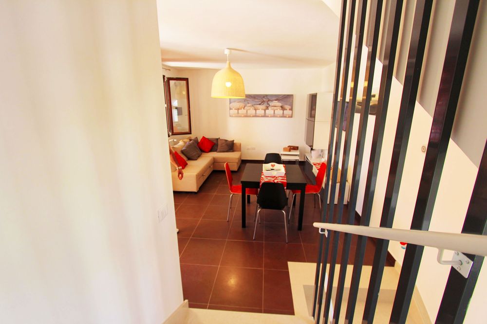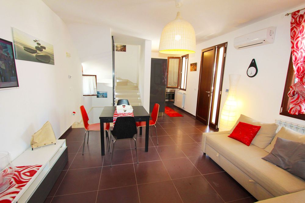 La villetta è dislocata su tre livelli. Al piano terra c'è un'ampia veranda attrezzata con tavolo e sedie da giardino per i vostri momenti di relax all'esterno, ampia zona soggiorno con divani, TV, aria condizionata e cucina completamente attrezzata di pentole, stoviglie, forno, lavastoviglie ecc.